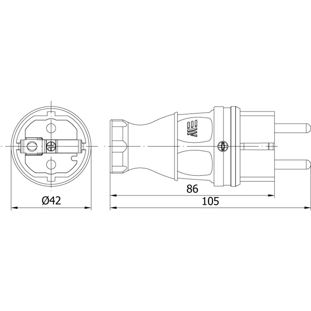 METESOLID - Düz Kauçuk Fiş, 16A, 220/240V, 2kV, 2P+E, Renk:Siyah, IP44, Arka Giriş, Vidalı Bağlantı